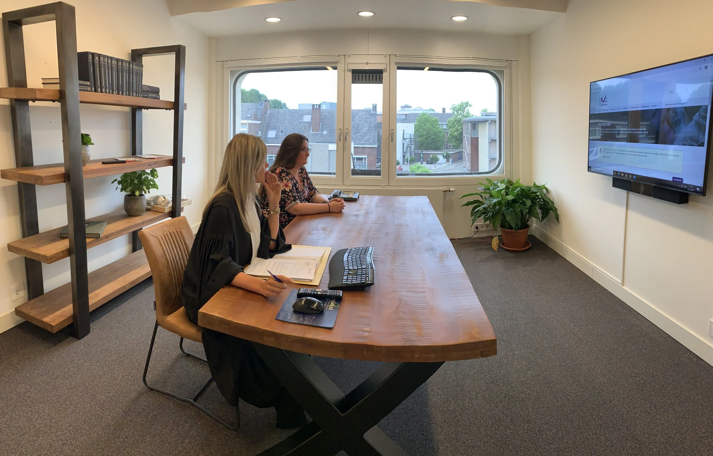 De rechtbanken gaan langzaam weer open, maar nog steeds worden veel zittingen digitaal gehouden. Wij zijn hierop - en met het oog op de toekomst - ingespeeld met een compleet nieuw ingerichte conference room. Op deze manier is het mogelijk om via een videoverbinding live uw zitting bij te wonen.